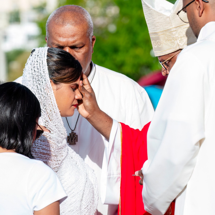 « Un discernement, une vocation, souvent, mo dir sa enn zen, nu pa disern to lapel. Chacun de nous est appelé. Pas besoin de poser cette question-là ; depuis le jour de notre baptême, Dieu nous appelle. Mais nous avons à discerner sur la réponse à donner (…) Toi jeune, tu sais écouter ; peut-être parfois nu dir ban zenn tro dan tapaz, portab ici, Tik Tok laba, Instagram, touletan pe chat, pe chatter mem. Me capav ki Jésus pe chat ar twa dan to leker e li importan ki twa osi to capav tan li chat avek twa (…) Toi, jeune, ta vocation c’est ta vie. La vocation à la vie, ce n’est pas écraser, voler, dominer, faire périr, suicide. Ça ce n’est pas le chemin qui amène la vie en abondance. Cette destruction de toi-même, cette souffrance intérieure, ce n’est pas cela que Dieu veut pour toi, mais Dieu veut que tu puisses, par ta réponse, avoir la vie et le bonheur sans fin ».