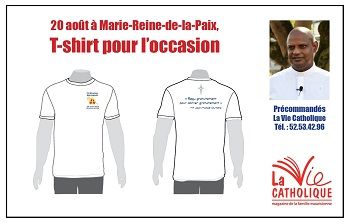 Danièle Babooram, rédactrice-en-chef, explique cette démarche : « Nous avons souhaité proposer des T-shirts à ceux qui se déplaceront au monument Marie-Reine-de-la-Paix, et ceux qui veulent garder un souvenir de ce moment important du diocèse de Port-Louis. A l’achat de ces T-Shirts, nous contribuerons à deux démarches de soutien : à l’attention de La Vie Catholique et de l’église Notre-Dame-du-Refuge, New-Grove, dernière paroisse où a été affecté Mgr Durhône».