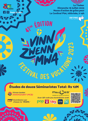 En marge de cet évènement, la campagne de levée de fonds pour le financement des études des douze séminaristes pour l’année 2023-2024 a été lancée le mercredi 07 juin 2023. En effet, les cartes de parrainage pour les paroisses et les établissements scolaires ont été remises aux personnes concernées le mercredi 07 juin 2023 à l’Évêché de Port-Louis.