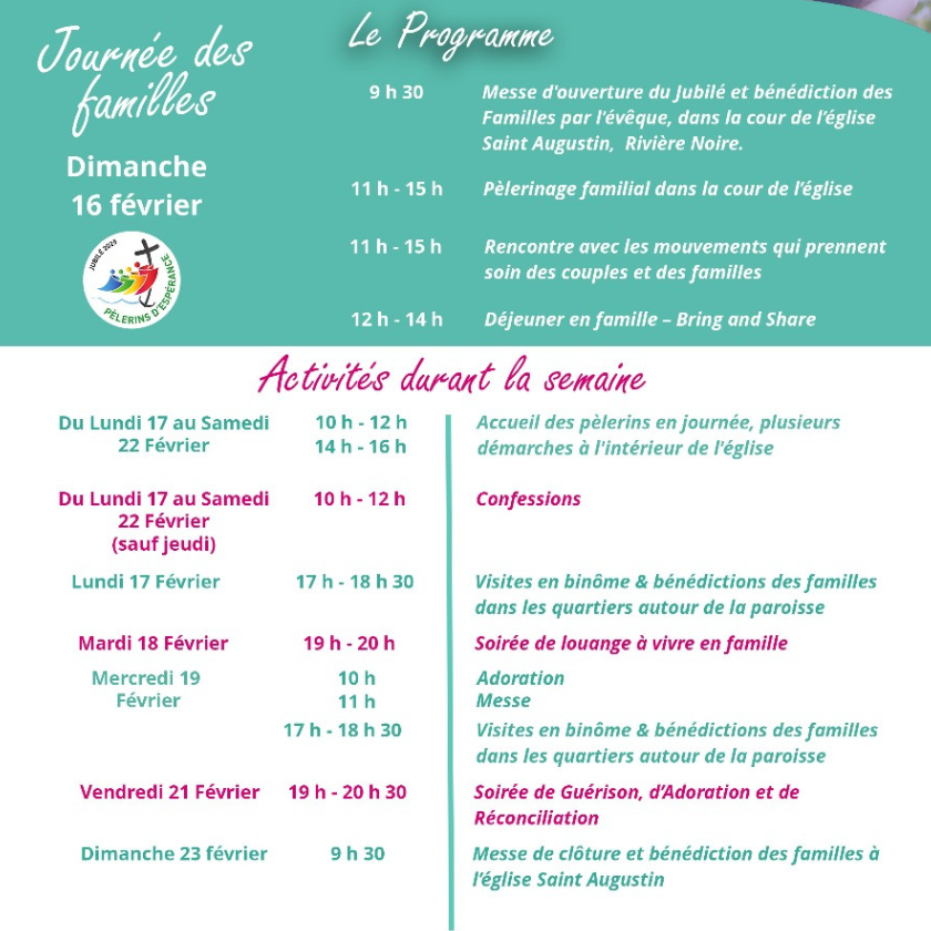 La paroisse Saint-Augustin, à Rivière Noire, ouvre la série de jubilés avec celui de la Famille. Ce jubilé, célébré offrira aux familles une occasion de se rassembler, de prier et de renforcer leurs liens dans la foi.