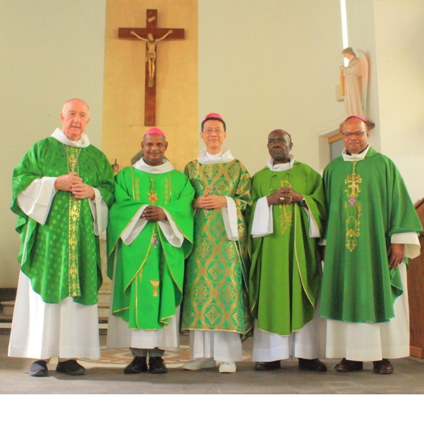 La XXXVe assemblée plénière de la Conférence Épiscopale de l’Océan Indien (CEDOI) s’est tenue cette année aux Brises à la Montagne, dans le diocèse de Saint-Denis de La Réunion, en communion avec le Pape François. Il nous invite à devenir une Église synodale : « marcher ensemble », en mission constante. L’année 2023-2024 est caractérisée par le renouvellement en profondeur de la CEDOI avec l’arrivée de trois nouveaux évêques : Mgr. Jean Michaël Durhône —Évêque de Port-Louis, Mgr. Pascal Chane-Teng —Évêque de Saint-Denis de La Réunion et Mgr. Michel Moura —Évêque du Vicariat Apostolique de Rodrigues, et les vicaires généraux. La présence du Cardinal Maurice Piat, Évêque émérite du Diocèse de Port-Louis et Mgr Gilbert Aubry, Évêque émérite du Diocèse de Saint-Denis de La Réunion. Nous avons eu la joie d’accueillir le nouveau nonce apostolique, son Excellence, Mgr Tomasz Grysa pour sa première participation à la CEDOI.