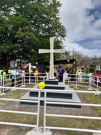 Cette croix qui se dresse sur le bord de la mer nous rappelle que Jésus qui est mort sur la croix et qui est ressuscité le 3e jour, il y a 2000 ans, a donné sa vie par amour pour nous. Aujourd’hui encore, ce Jésus est vivant, il vous aime et se fait proche de chacun de vous, les Agaléens de l’île du Nord et l’île du Sud. Il partage vos joies, il connaît vos peines, il reste auprès de vous, il porte votre croix avec vous, vous encourage et éclaire votre vie par la lumière de son amour.
