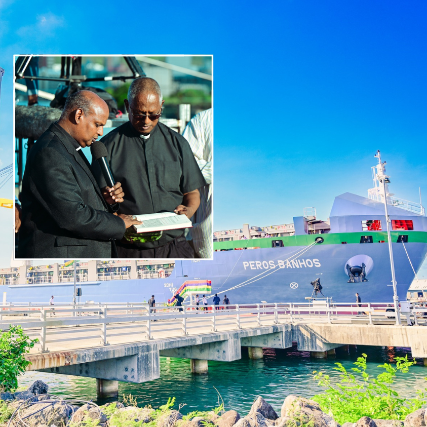 Hier après-midi, au port, Mgr Jean Michael Durhone et le père Jacques-Henri David ont participé à l'inauguration du navire Peros Banhos en présence de nombreux dignitaires, dont le Premier ministre M. Pravind Jugnauth et son épouse.
