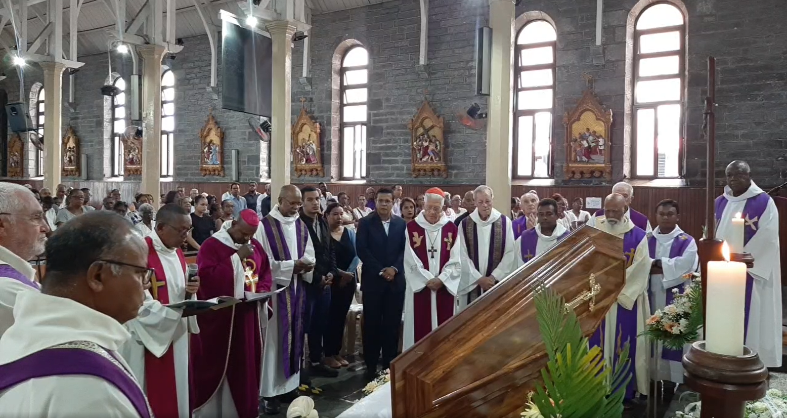 Mgr Jean Michaël Durhône a présidé ce matin la messe des funérailles du Père Jocelyn Patient à l'église Sacré-Cœur de Beau-Bassin. Vous pouvez suivre la célébration sur la page Facebook de la paroisse Sacré-Cœur de Beau-Bassin en cliquant sur le lien suivant : https://www.facebook.com/100064326746430/videos/1637756936966384