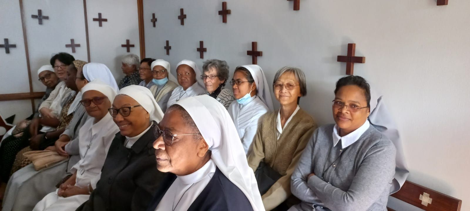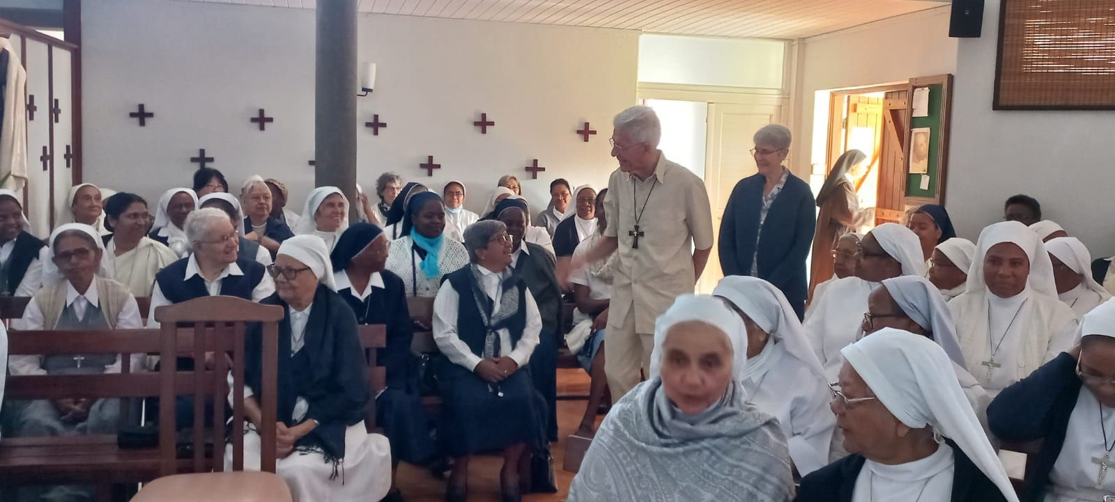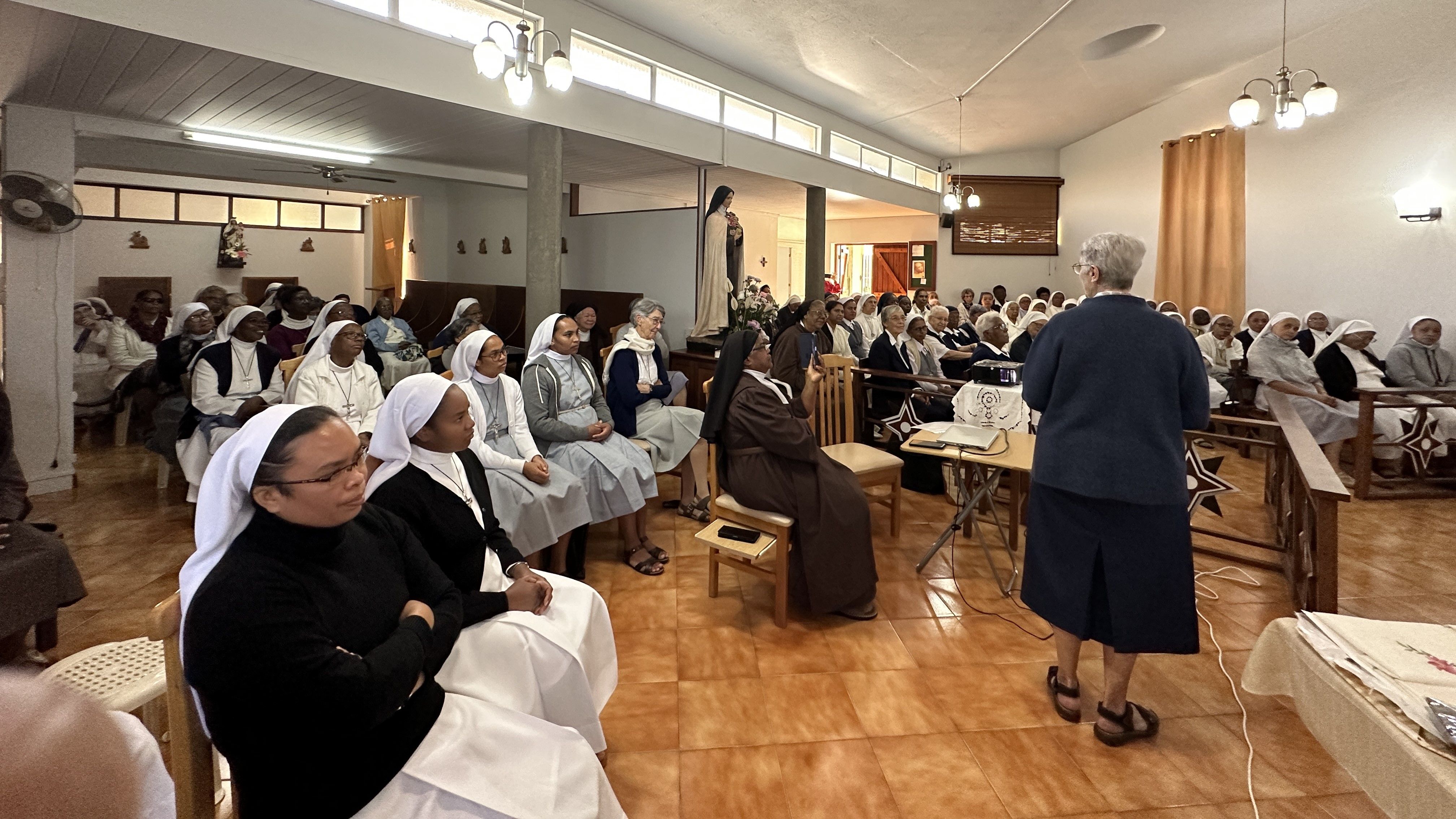 Rencontre entre les Mgr Durhone, le Cardinal Piat et les religieuses des congrégations du diocèse