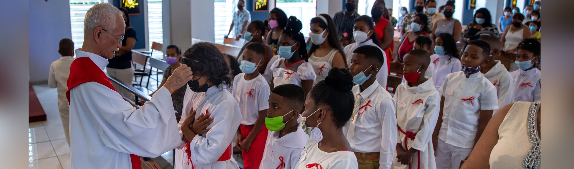 La confirmation est l’un des sacrements de l’initiation avec le baptême et l’eucharistie. A la confirmation, qui est le sacrement de la croissance, l’Esprit Saint est donné par l’imposition des mains et l’onction avec le Saint Chrême pour confirmer la grâce reçue au baptême. C’est un prolongement et un approfondissement du baptême. Dans le diocèse de Port-Louis, à partir de 2021, elle est célébrée durant l’année de la grade quatre au primaire (vers l’âge de 9 ans).