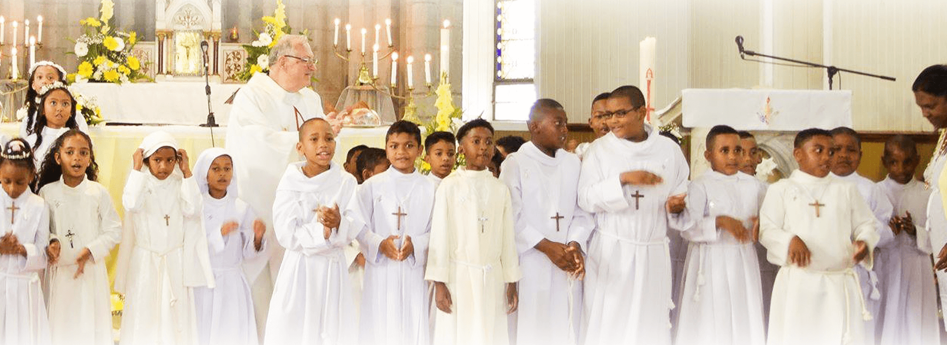 La première communion demande une préparation sérieuse. Dans le diocèse de Port-Louis, à partir de 2022, elle aura lieu durant l’année de la grade cinq au primaire (vers l’âge de 10 ans) à l’issue d’une catéchèse suivie. Les parents doivent être impliqués dans la préparation en lien avec la communauté paroissiale.