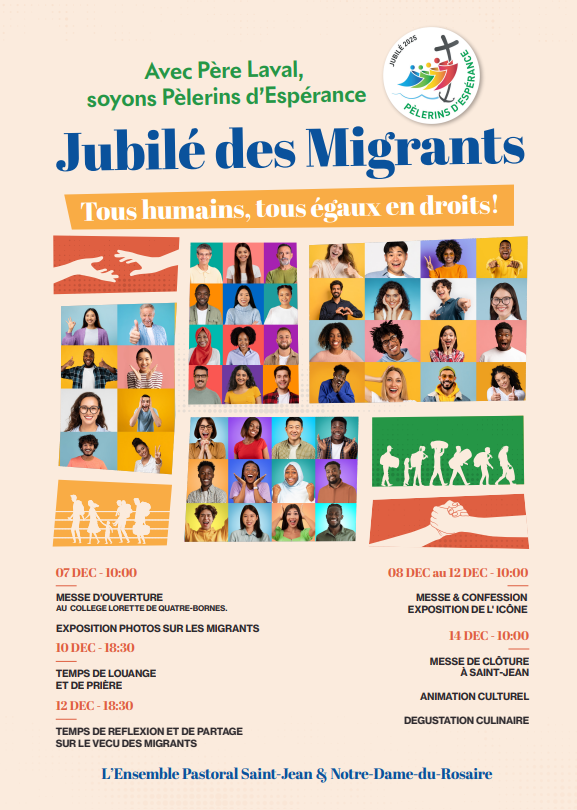 Seigneur, en cette année jubilaire, où le mois de décembre est consacré au Jubilé des Migrants pour notre Diocèse, nous te prions pour ces personnes, qui, pour la plupart, fuient la guerre, la pauvreté et l’exclusion sociale.