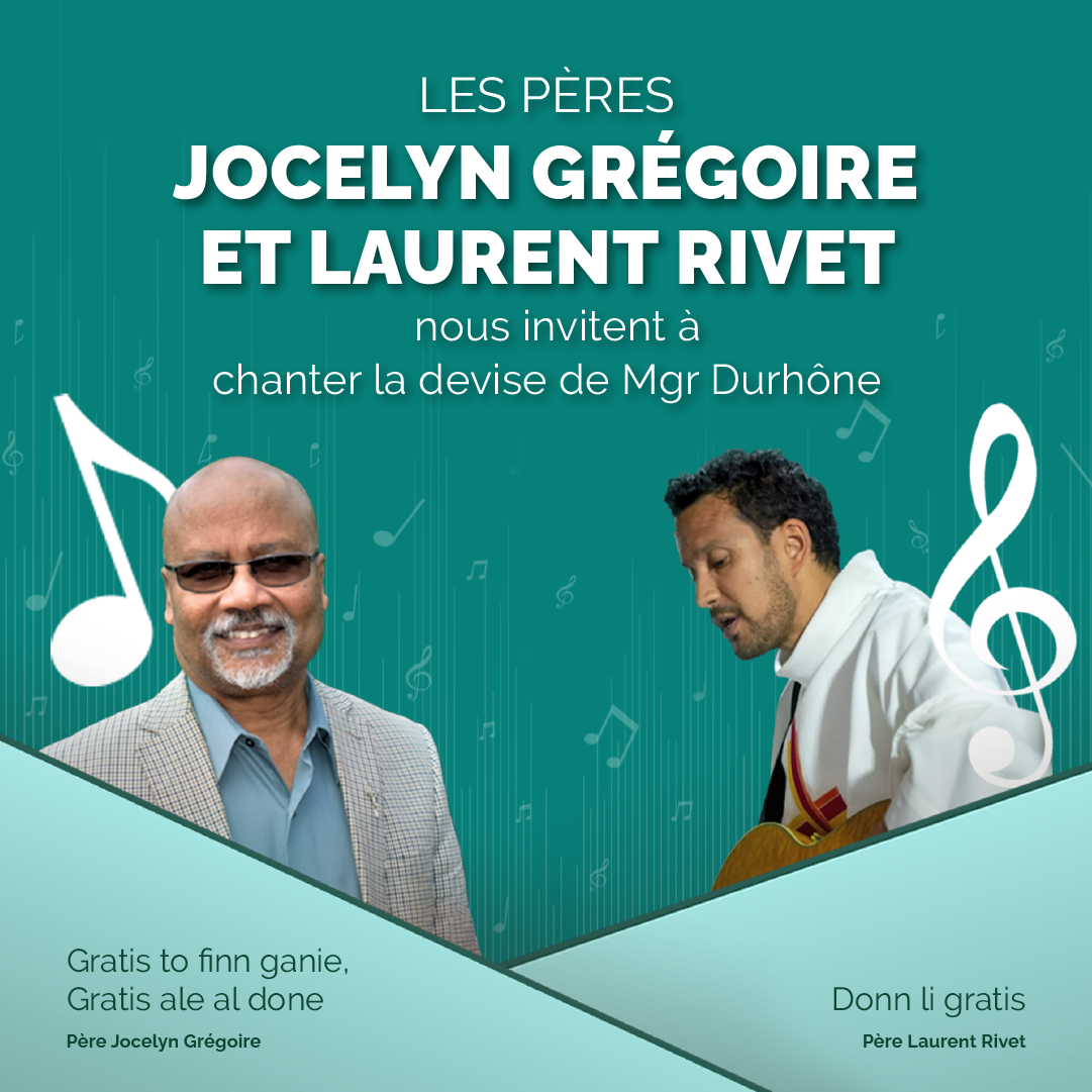 • Les pères Jocelyn Grégoire et Laurent Rivet nous invitent à chanter la devise de Mgr Durhône