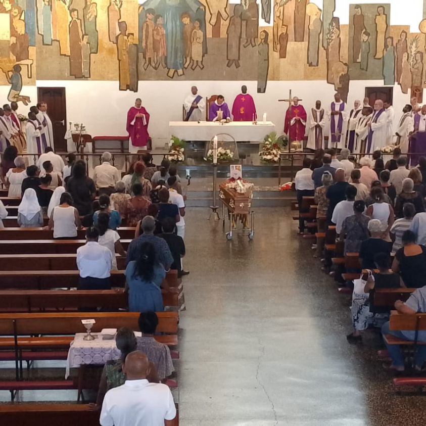 Les funérailles du père Guy Simonet ont eu lieu ce vendredi 23 janvier 2026 à l’Eglise Sainte-Croix. Mgr Durhône et le Cardinal Maurice E. Piat, tous deux actuellement hors du pays, ont envoyé un message ainsi que Mgr Chane Teng, évêque de Saint-Denis, Réunion. et Gilbert Aubry, évêque émérite.