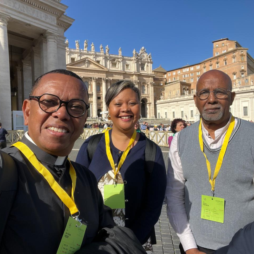 Le P. Véder et deux laïcs, Joyce Rouget et P. Michel à Rome pour le Jubilé des équipes synodales