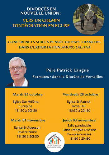 A l’initiative du Cardinal Maurice E. Piat, le père Patrick Langue sera à Maurice du 21 octobre au 04 novembre prochain pour aborder, auprès de différents publics, la thématique de l’accueil des divorcés remariés dans l’Eglise.