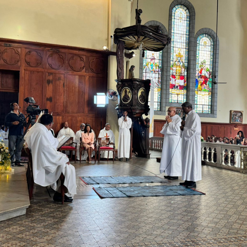 L’Eglise à Maurice est dans la joie en ordonnant diacres permanents Patrick et Benjamino. Cette ordination engage à la fois Patrick et Benjamino , mais aussi leurs épouses Stella et Lilette ainsi que leurs familles. Le livre du Déteuronome nous le rappelle ; Le Seigneur te comblera de bonheur en toutes tes œuvres : il fera fructifier ta famille, ton bétail et ton sol ; oui, de nouveau le Seigneur prendra plaisir à ton bonheur, comme il prenait plaisir au bonheur de tes pères Pour être ordonnés diacres, les épouses et les enfants ont un rôle important dans le cheminement de Patrick et Benjamino. A l’appel des candidats, les épouses Stella et Lilette se sont mises à côté de leurs époux et je leur ai demandé : L’Eglise me demande d’ordonner diacres vos époux. Acceptez- vous tout ce que le diaconat qu’ils vont reçevoir apportera de nouveauté dans votre couple et votre vie de famille?