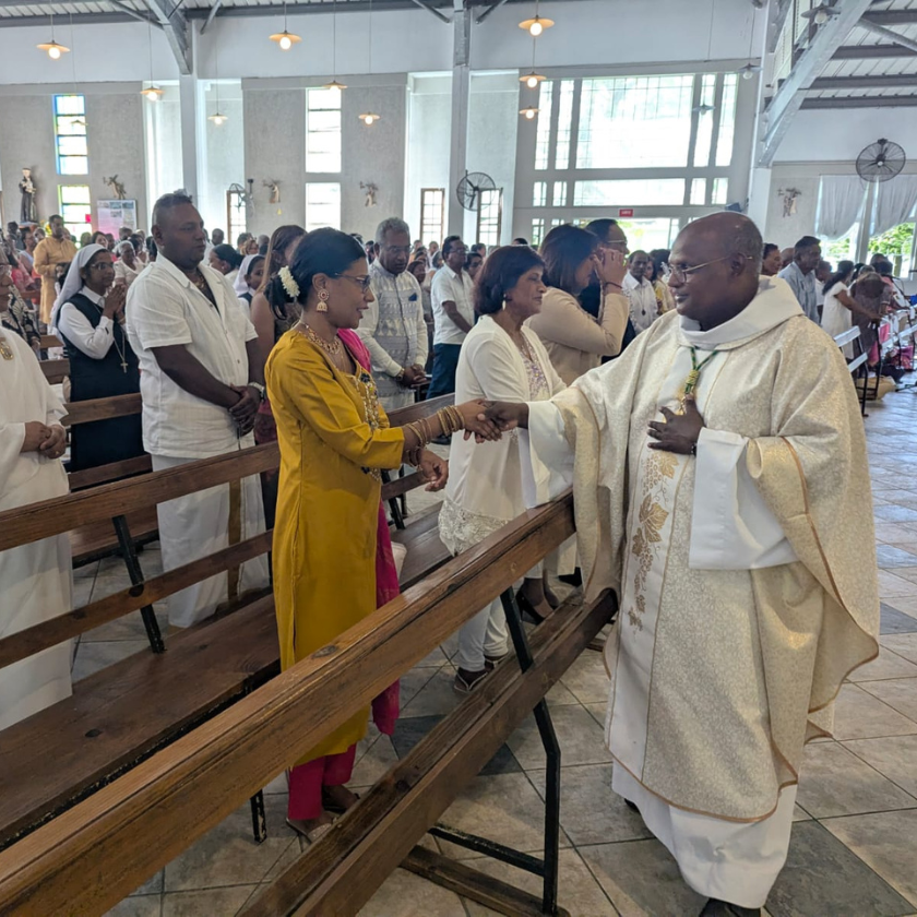 La préparation et la célébration de cette messe ont été le fruit d’un beau marcher ensemble entre la paroisse et l’Indo Mauritius Catholic Association (IMCA). Présidée par Mgr Jean Michaël Durhône, la célébration s’est déroulée en français, tamoul, kreol et hindi, symbolisant l’unité dans la diversité.