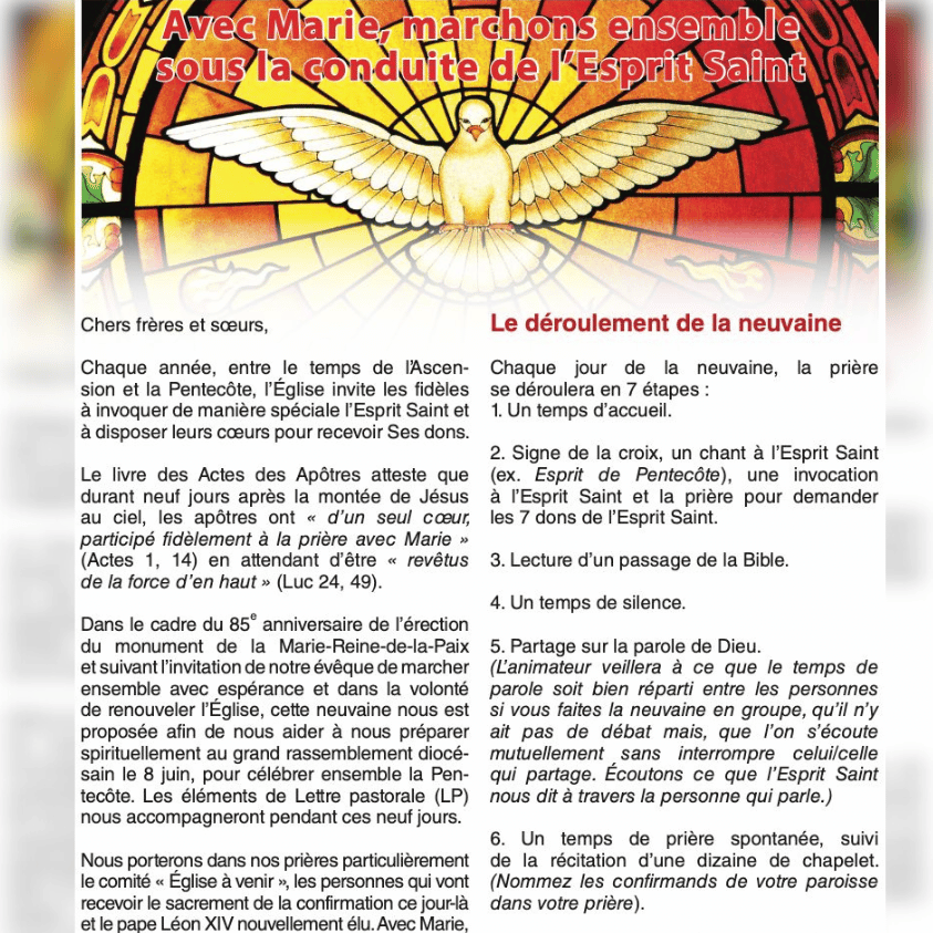 À l’approche de la fête de la Pentecôte, nous vous invitons à vivre une neuvaine à l’Esprit Saint du 30 mai au 7 juin 2025.