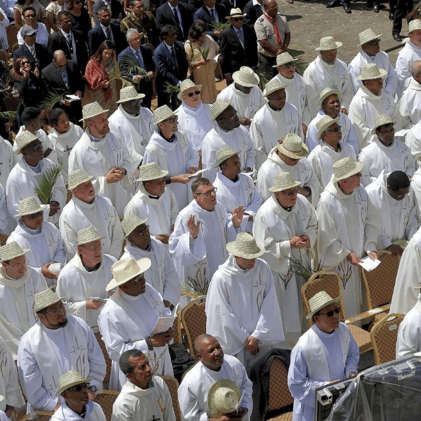 Comme vous en faites l’expérience en ces jours de partage, les paroisses dans lesquelles vous exercez votre ministère se trouvent dans des contextes très différents : de celles des périphéries des mégalopoles – je les ai connues personnellement à Buenos Aires – à celles, vastes comme des provinces, dans les régions les moins densément peuplées ; de celles des centres urbains de nombreux pays européens, où les anciennes basiliques abritent des communautés de plus en plus petites et âgées, à celles où l’on célèbre sous un grand arbre et où le chant des oiseaux se mêle à la voix de nombreux enfants.