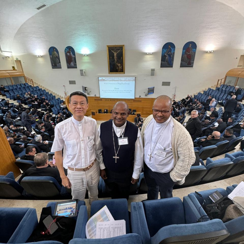 Mgr Jean Michaël Durhône, évêque de Port-Louis, Mgr Michel Moura, Vicaire Apostolique de Rodrigues, et Mgr Pascal Chane Teng, Evêque de Saint-Denis, La Réunion, participent depuis dimanche dernier, à la formation dispensée aux évêques nouvellement nommés.