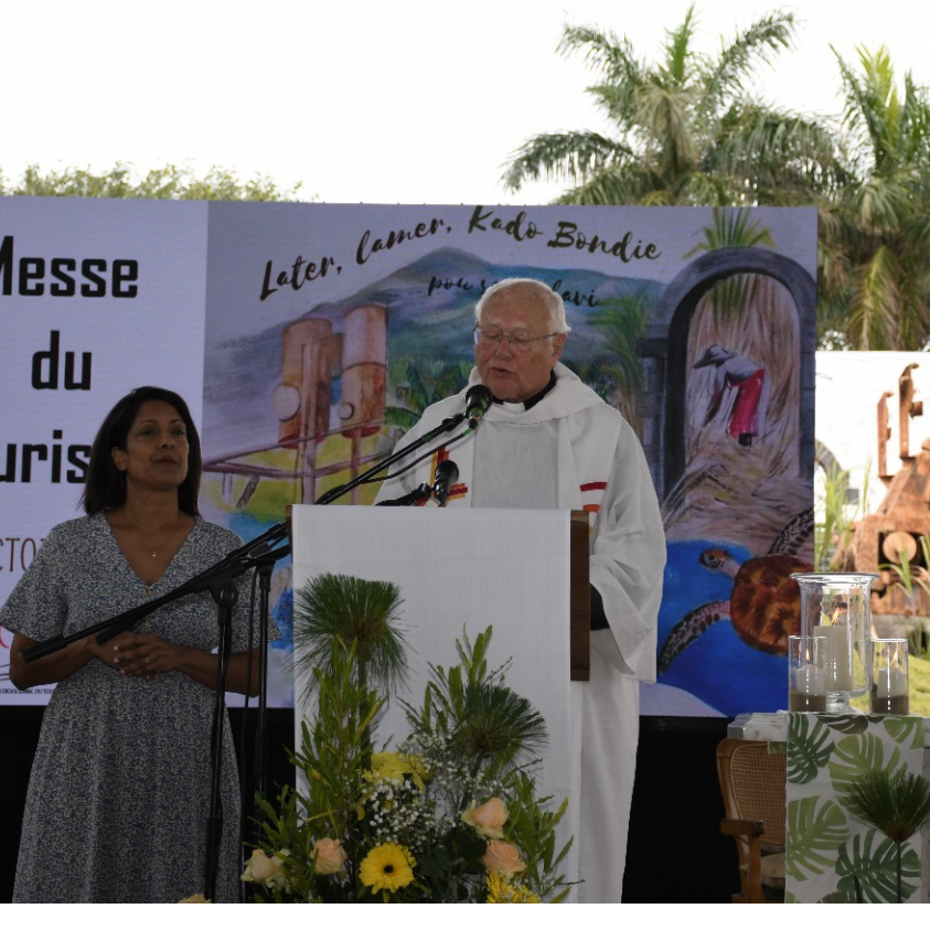 Pour son 35e anniversaire, la Commission Diocésaine du Tourisme est heureuse de vous accueillir tous et de rendre grâce à Dieu pour cette collaboration fraternelle qui nous a permis pendant 35 ans de célébrer ensemble la Journée Mondiale du Tourisme. Nous le faisons en lien avec la Commission Pontificale pour les Migrations et le Tourisme au Vatican, laquelle Commission nous envoie chaque année un message du Pape François. Nous avons pu célébrer cette Journée mondiale du Tourisme dans tous les coins du pays et aujourd’hui nous remercions Rogers et Beachcomber de nous donner l’occasion de la faire dans ce lieu historique de Bel Ombre d’où partaient au siècle dernier les voiliers chargés du sucre à être transporté à Port Louis afin d’être vendu sur le marché mondial.
