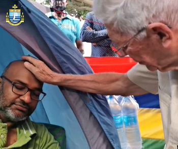 De retour au pays samedi, le cardinal Maurice E. Piat a rendu visite hier à Nishal Joyram, le gréviste de la faim. Après l’avoir écouté, l’Évêque de Port-Louis lui a donné une bénédiction.`