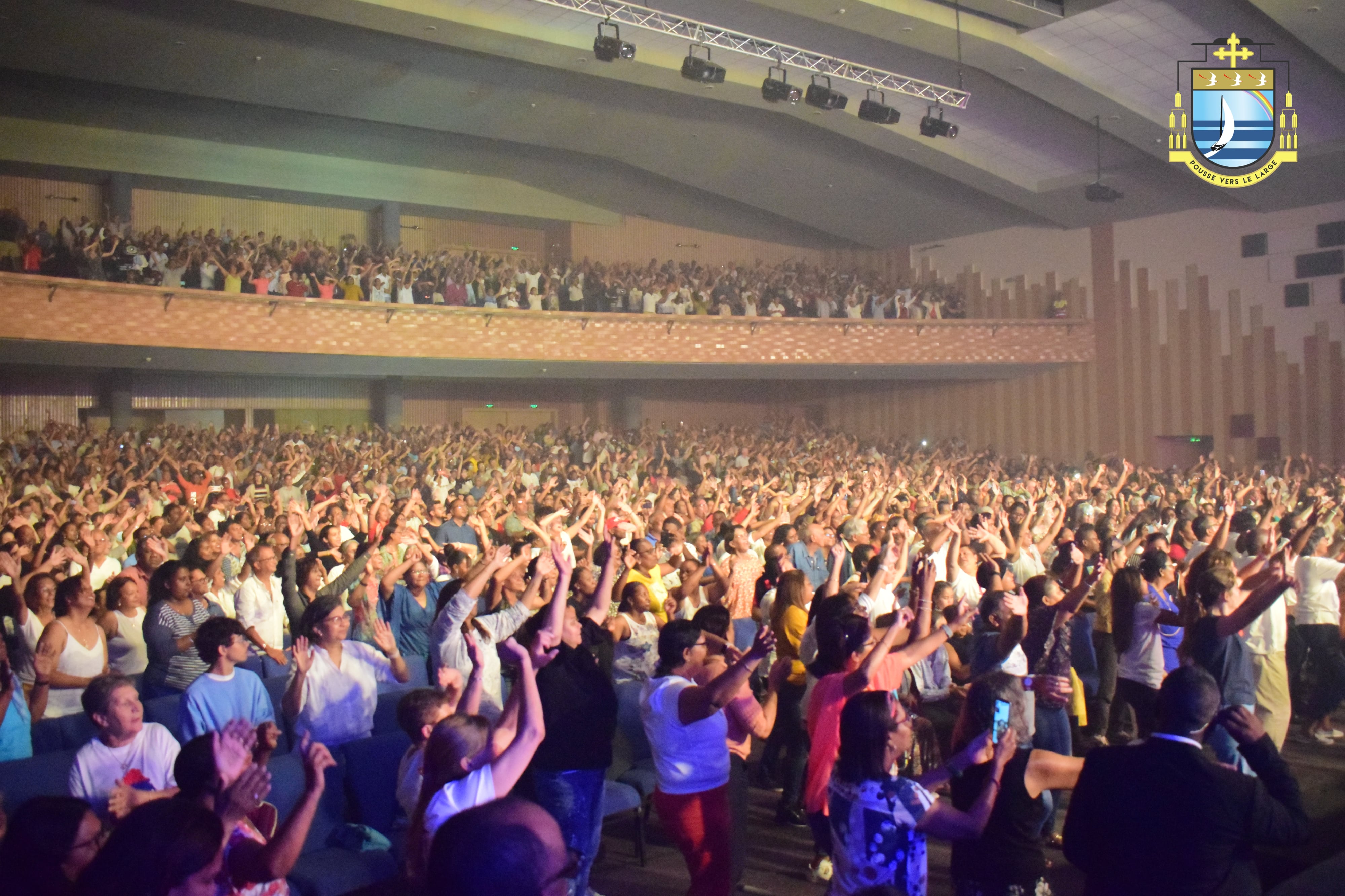 Glorious a mis le feu au JNJ Auditorium hier lors de la deuxième soirée de louange. Les Mauriciens ainsi que le Cardinal Piat ont vécu un moment intense et festif.