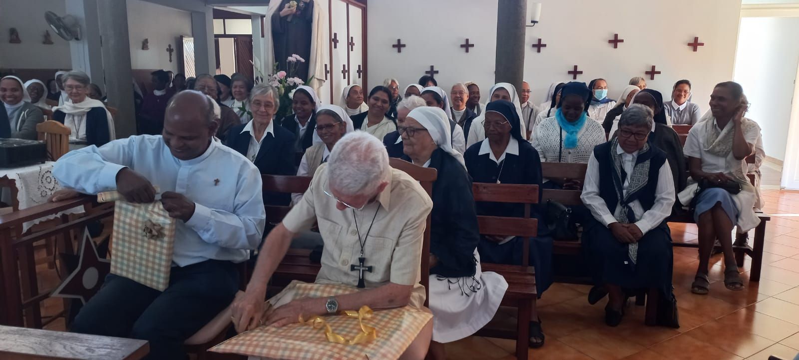 Rencontre entre les Mgr Durhone, le Cardinal Piat et les religieuses des congrégations du diocèse