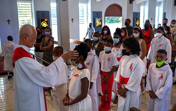 La confirmation est  l’un des sacrements de l’initiation avec le baptême et l’eucharistie. A la confirmation, qui est le sacrement de la croissance, l’Esprit Saint est donné par l’imposition des mains et l’onction avec le Saint Chrême pour confirmer la grâce reçue au baptême. C’est un prolongement et un approfondissement du baptême. Dans le diocèse de Port-Louis, à partir de 2021, elle est célébrée durant l’année de la grade quatre au primaire (vers l’âge de 9 ans).